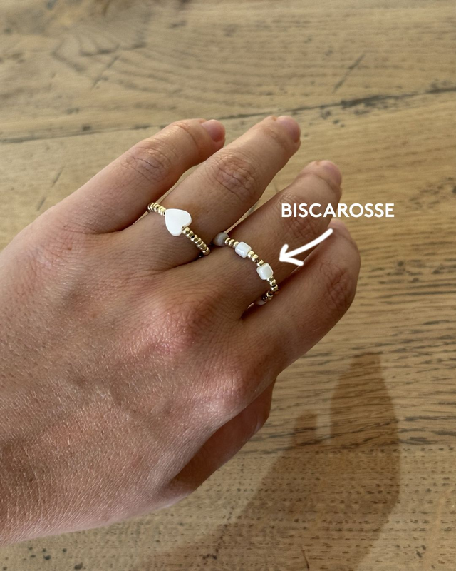 - La bague "Guethary" est composée de perles dorées et d'un coeur nacré naturel.