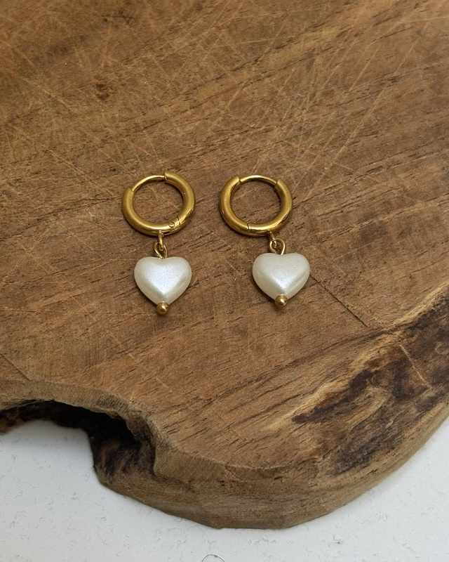 - Les boucles d'oreilles "Bidart" sont composées de créoles en acier inoxydable et de coeurs nacrés
