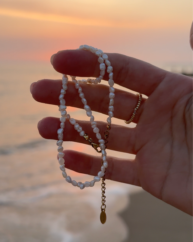 - Le collier "Waimea" est composée de perles d'eau douces naturelles