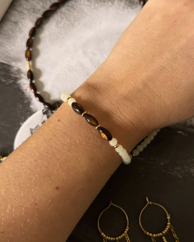 - Le bracelet "Bohemia" marron est composé de perle de riz marron naturelle et d'une chaine en acier inoxydable.